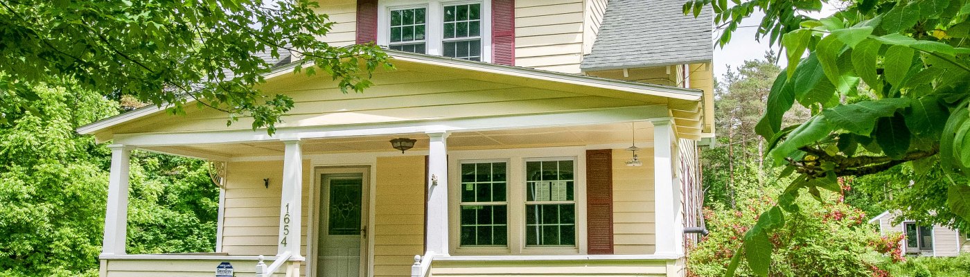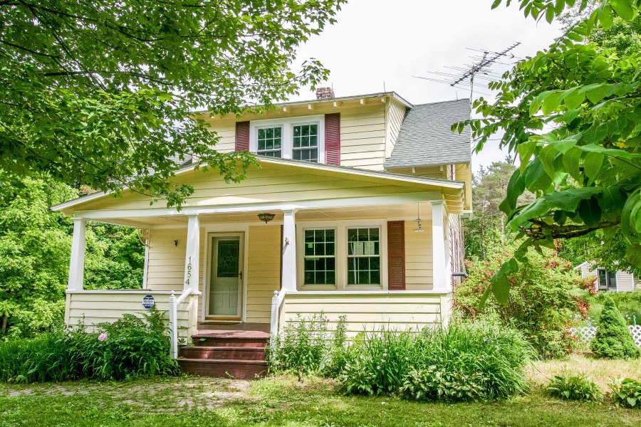 An Arts & Crafts style home with 56.80 acres of woods, streams, ponds, waterfalls, & cleared fields. The 2 bedroom, 2 bath home features a classic covered porch off of the front door. There’s also a deck off the back of the house that is elevated off the ground, and provides a perfect spot to enjoy two of the home’s closest ponds in the backyard, including the spring-fed pond. Additional ponds, and waterfalls are located throughout the property, including the highest elevation waterfall found in the woods. The property also includes fields of fruit trees, and old logging roads through the woods that are ideal for hiking or quad vehicles.