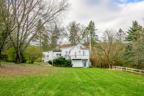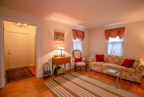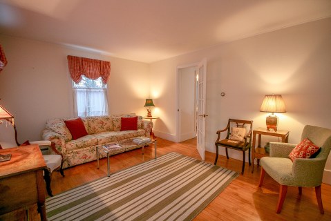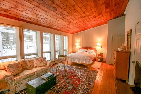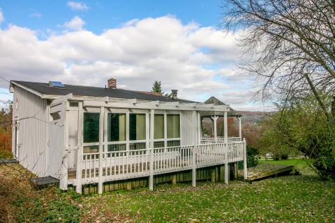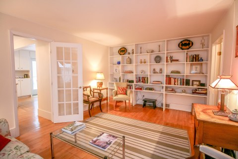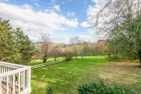 A simple front exterior, but inside you’ll find a stylish and light-filled home with Mountain and valley views. Located in the foothills of the Berkshires, this whimsical space has a proper entryway that leads to the living room, which has a wall of built-ins.