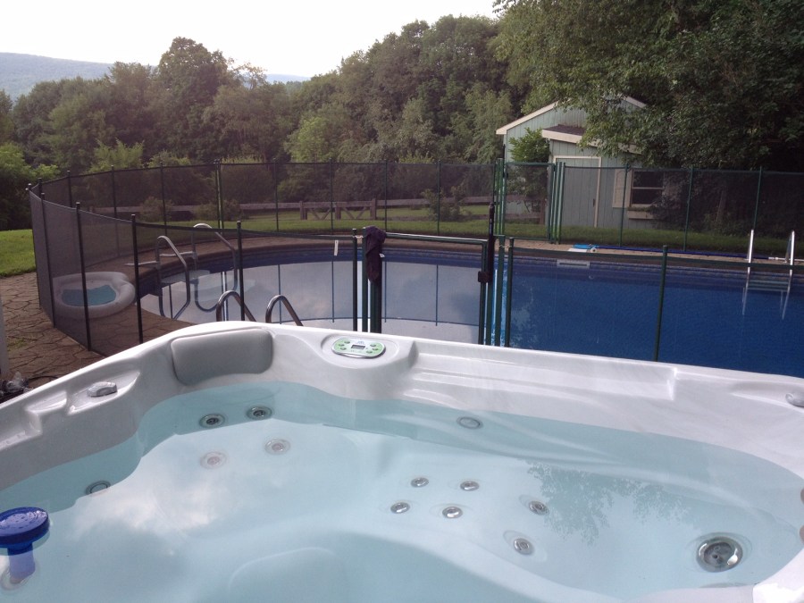Outside, an Azek deck leads to hot tub area & in-ground pool. Beyond the pool and back yard is the fenced meadow and barn with stalls for two horses.