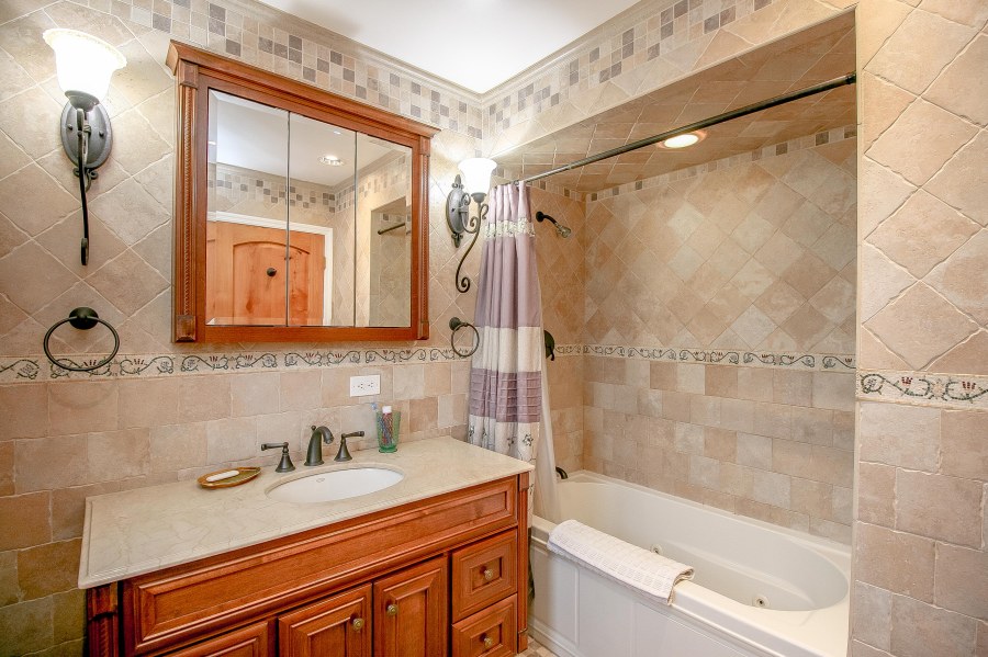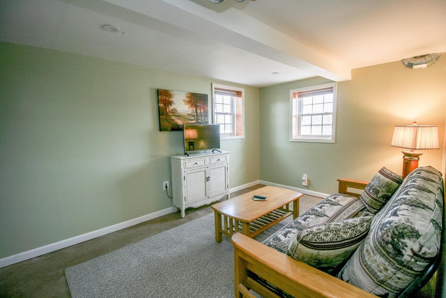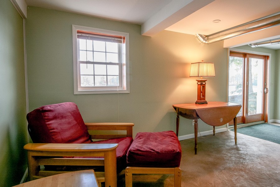 Two additional bedrooms and the loft over the living room ensure there is plenty of room for weekend guests to this lakeside retreat. One of the bedrooms is located in the lower level and has a bathroom. This could also be a home office, or den as seen in the picture below. The lower level also has a bonus room with sliding glass door to the patio.