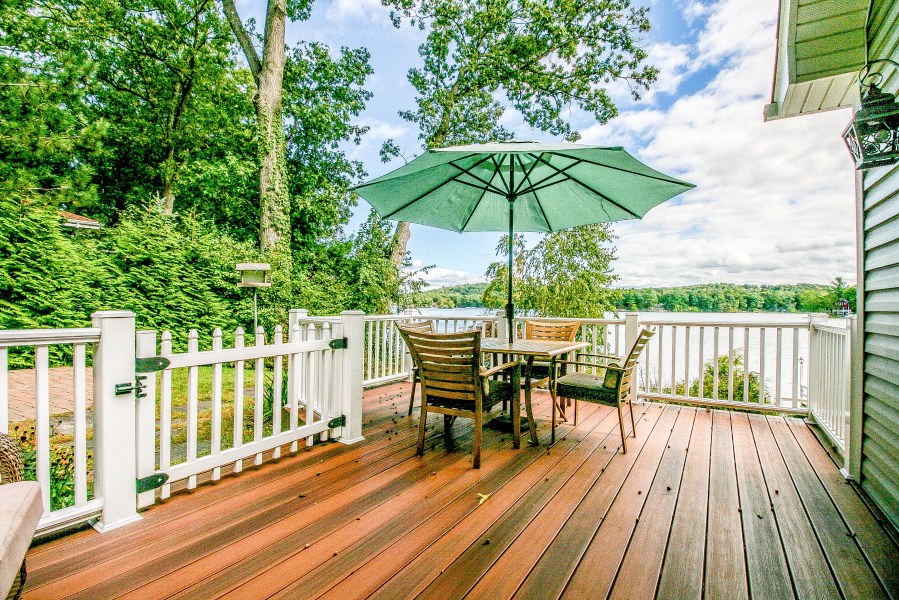 The lake can be viewed from every room of this house thanks to 150-Feet of Lake Frontage. There’s also a second deck off of the kitchen, a dock, flagstone patio off lower level, & Goshen stone steps leading to a cobblestone patio w/ a Wood-Fired Pizza Oven.