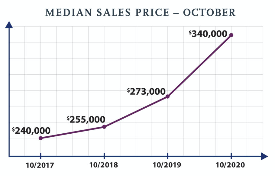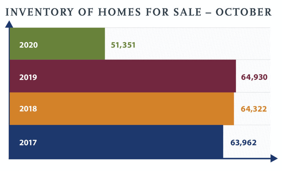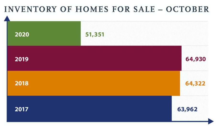 Housing inventory remained low through October. The 51,351 units represented a 20.9 percent decrease compared to 64,930 homes last year at the same time. Months supply of inventory dropped 23.2 percent – from 5.6 months to 4.3 months.